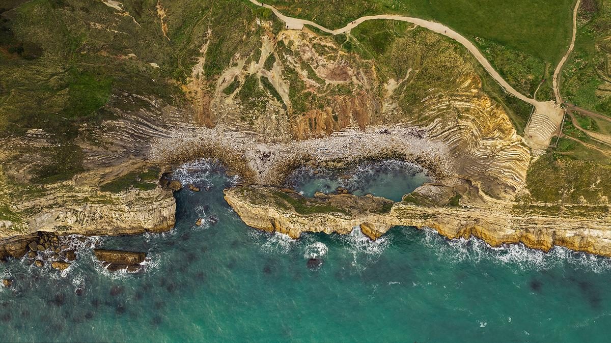 Lulworth Cove’s history dates back to 150 million years ago. It is a prime example of differential erosion, where the sea broke through the Portland limestone and chalk, exposing softer clays and greensands beneath. The softer rocks and minerals and the dynamic environment, highlight the importance of the conservation efforts that aim to protect this geological and historical site from more damaging erosion.